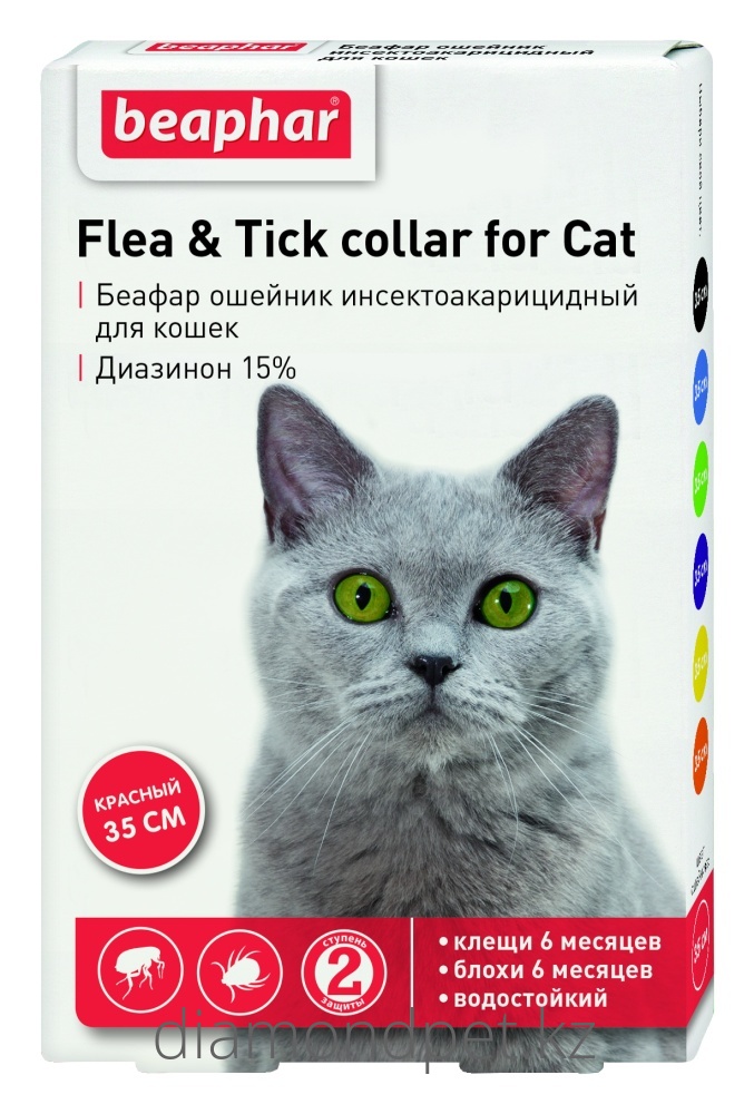 Ошейник от блох и клещей Beaphar для кошек с шестимесячного возраста. Уничтожает паразитов и защищает от повторного заражения блохами и клещами в течение 6 месяцев. Средство 2-й ступени четырехступенчатой программы Beaphar по защите от паразитов.